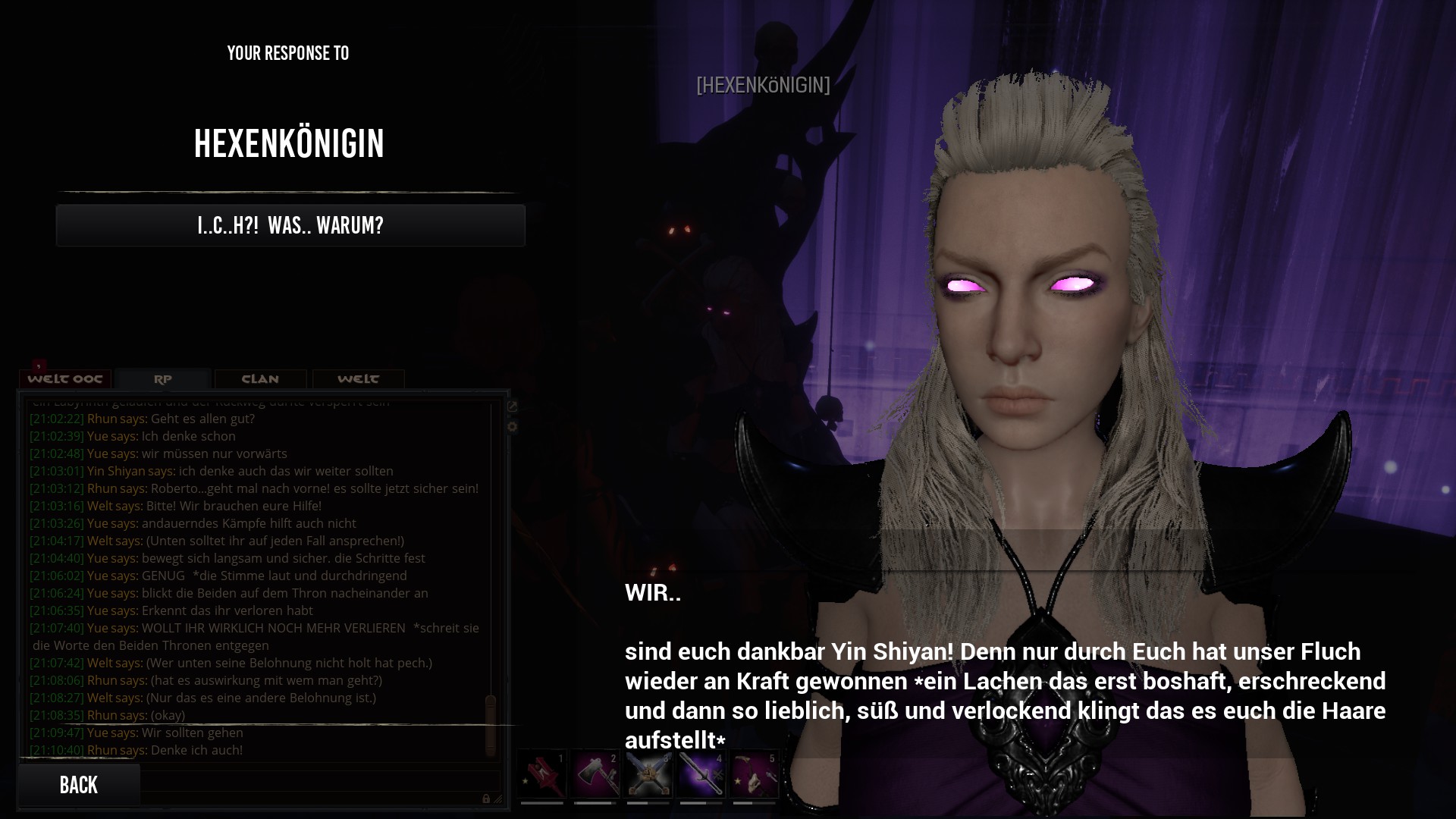 <p>Diesjähriges Halloween-Event: Blutmondnächte</p><p><br></p><p>Einige Stunden durften sich Spieler und Admins bei dem Event auslassen. Wir bedanken uns auch hier nochmal bei allen Teilnehmern. Ihr wart großartig&nbsp;<img src="https://conanexiles.zone/community/images/smilies/emojione/1f618.png" alt=":*" class="smiley" srcset="https://conanexiles.zone/community/images/smilies/emojione/1f618@2x.png 2x" height="23"></p><p>Der Aufbau bleibt bis nach dem 31.10 stehen und kann OOC noch betrachtet werden.&nbsp;</p>