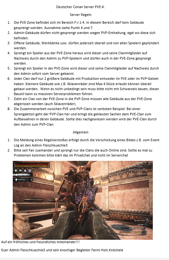 Für mich als Admin ist es wichtig das der Server gut läuft und es wenig streit gibt deshalb habe ich auf meinem Server nur Regeln die ich gut kontrollieren und auch sofort umsetzten kann bei Regelverstoß. Ich cheatet nach wie vor nichts. Bilder von den Serverregeln sowie von den Event und Admingebäuden in den Nachfolgenden Beiträgen.