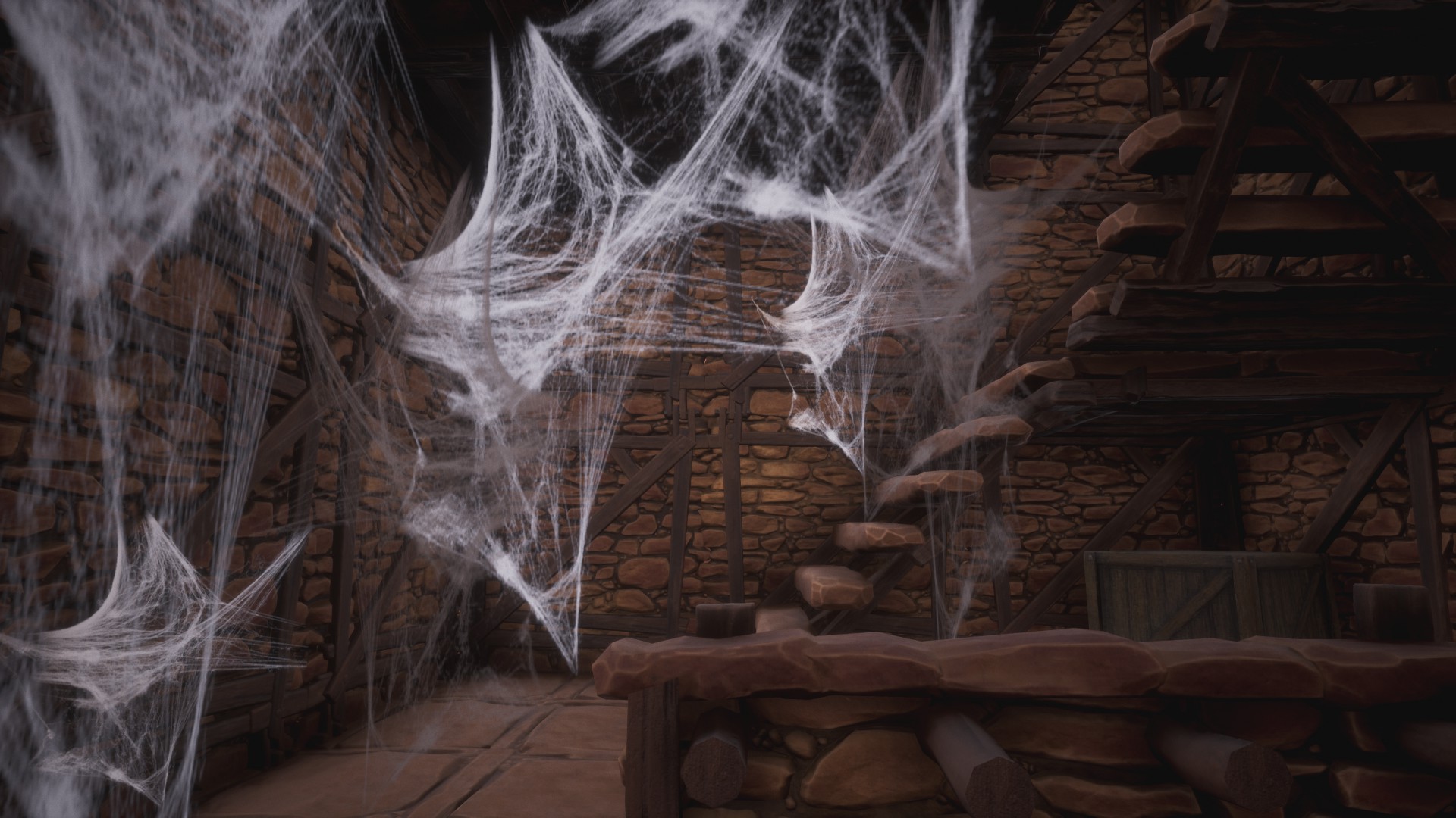 Das Licht ist dunkel hier unten. Man sieht hunderte von Schädeln und Knochen, die fein säuberlich aufgehängt sind und leise klappern, wie von unsichtbarer Hand angestoßen und bewegt. Es ist unheimlich hier. Die Priesterin holt ein Fell und die drei setzen sich inmitten der Knochen auf den Boden. Mein Spion krabbelt in den Schatten und im Dunkeln über die kalten, dunklen Steinfliesen, auf denen ich hier und da noch Überreste von getrocknetem Blut ausmache.