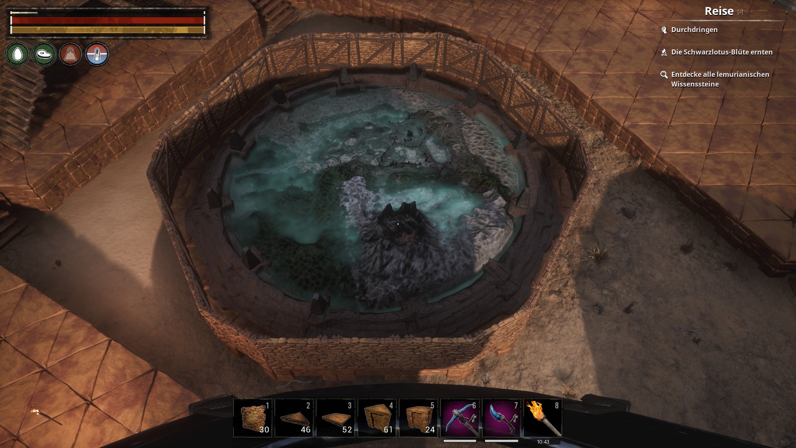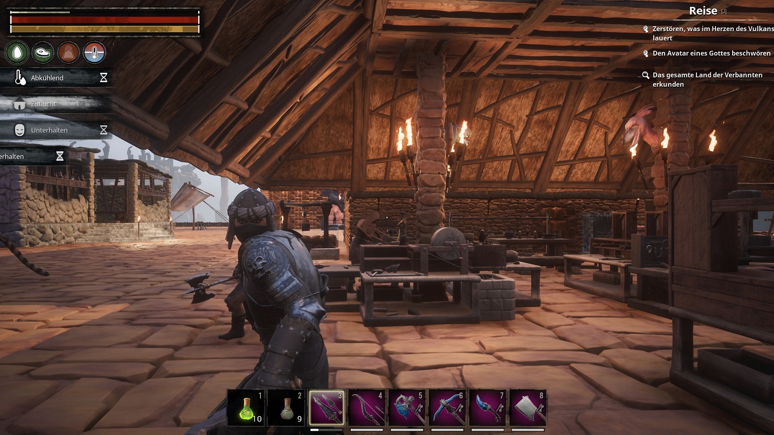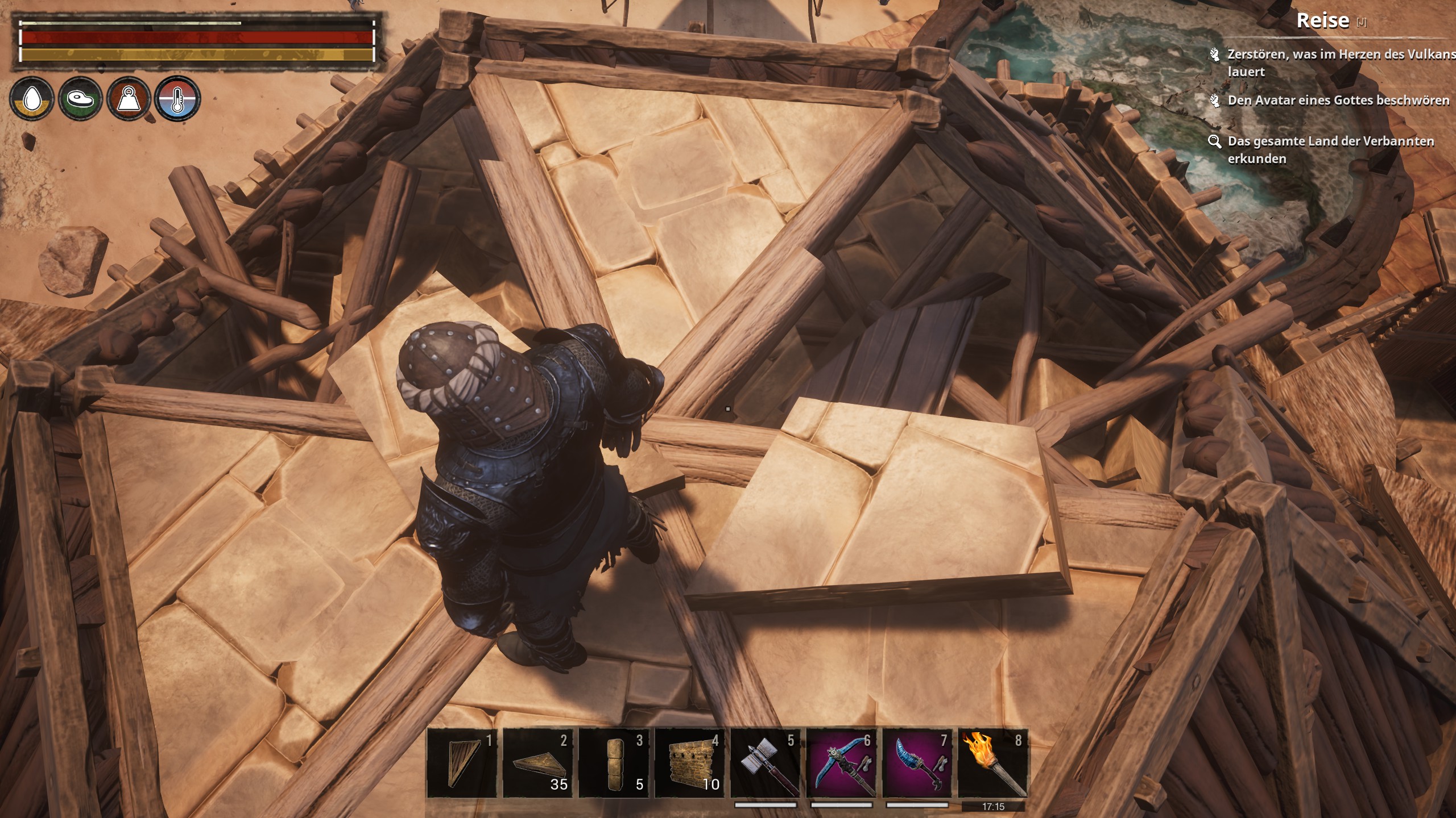 Ist einerseits lustig weil ich Werkzeuge einladen ohne Ende und dann eine Riesenrunde um Steine, Eisen und Holz einzusammeln laufen kann, bevor ich wieder in die Basis gehe zum abladen.