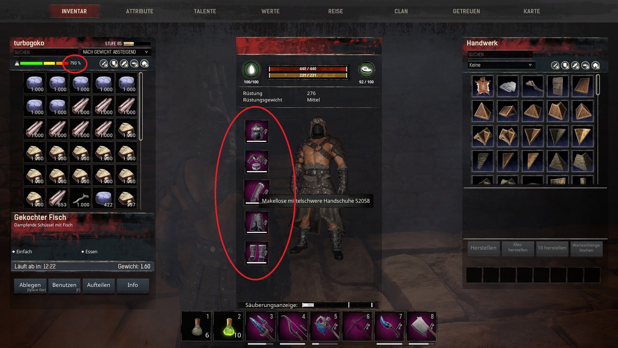 Habe bis jetzt nur rausgefunden, dass ich von der folgenden Rüstung (siehe Screenshot) mindestens 3 Teile anziehen muss damit es geht, bei weniger Rüstungsteilen diesen Typs kriecht er bei Überladung wie früher wie eine Schnecke.