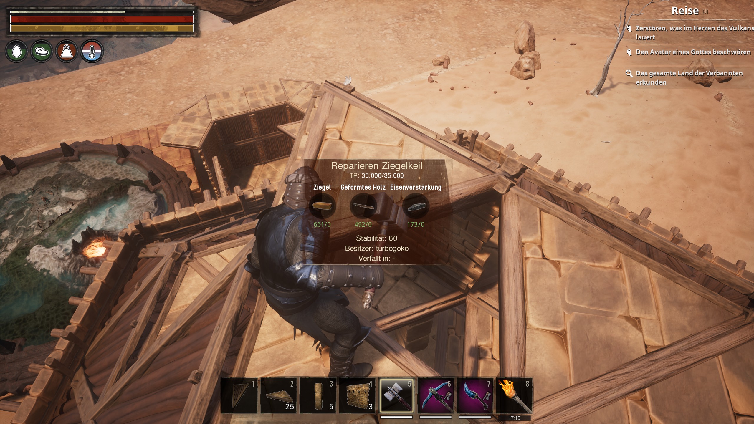 Warum ändert sich also die Stabilität von 20 zu 40 oder 60 je nachdem wie man eine Decke auf dieselbe Säule platziert und warum hat sie beim Neustart dann anscheinend wieder nur 20 und das Anbauteil zerbröselt?