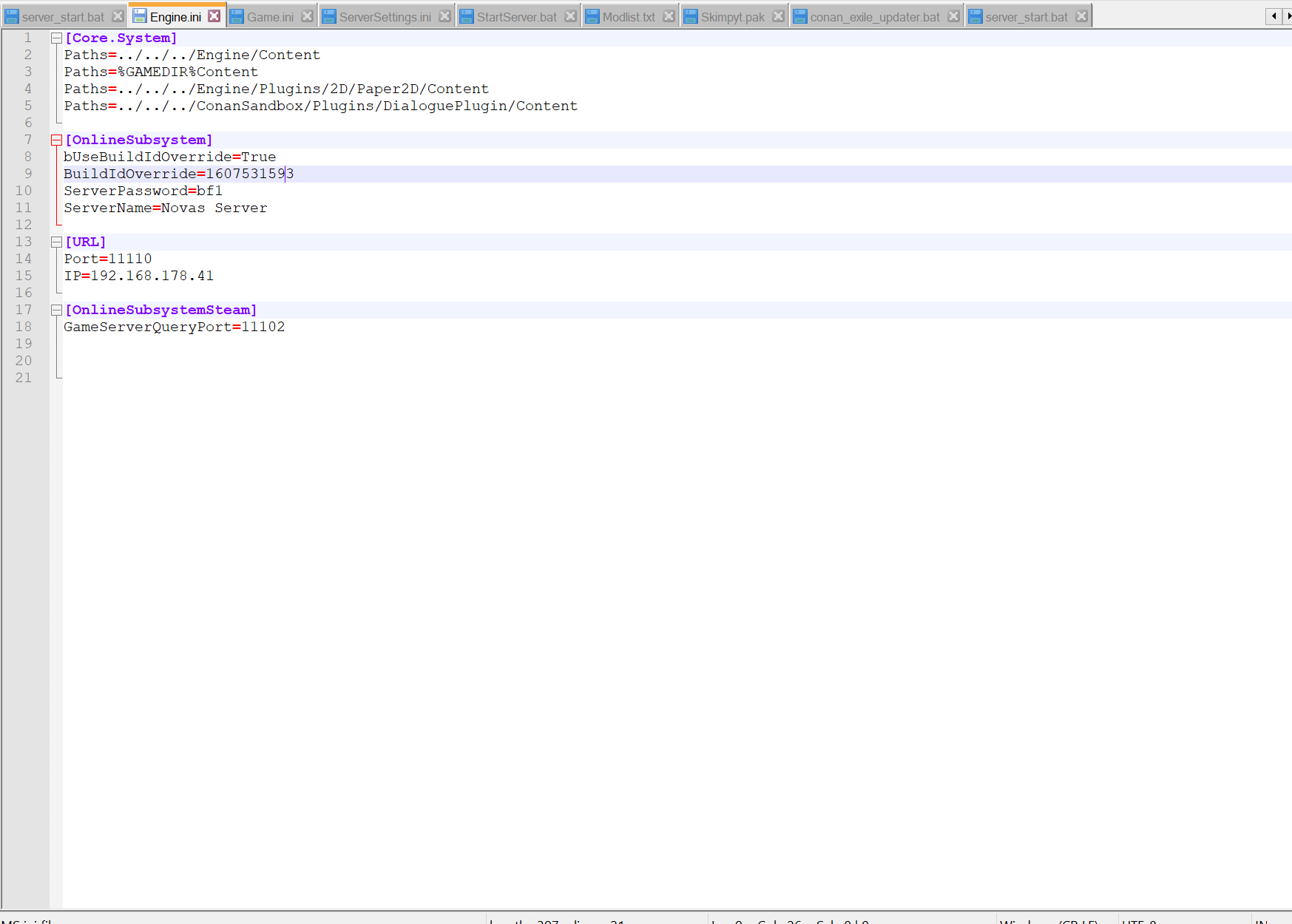Auch immer wenn ich den Server starte verschwindet [URL] und [OnlineSubsystemSteam] aus der Engine.ini. Er löscht die Zeilen quasi einfach.