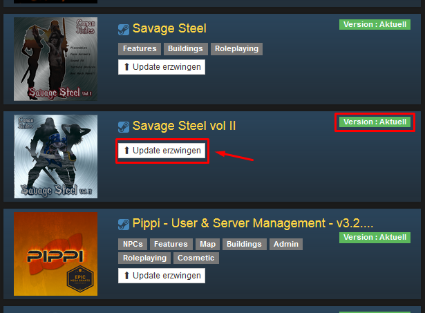 Bei dem nun gemieteten Server (Windows) weiß er das aber und zeigt er mir den Mod, für den es ein Update gibt auch an. Im Bild ist es angedeutet, da aber gerade kein Update vorliegt kann ich es nicht deutlicher zeigen aber der Button mit dem Pfeil ändert sich zu "Updaten" (glaub ich) und unterscheidet sich farblich.