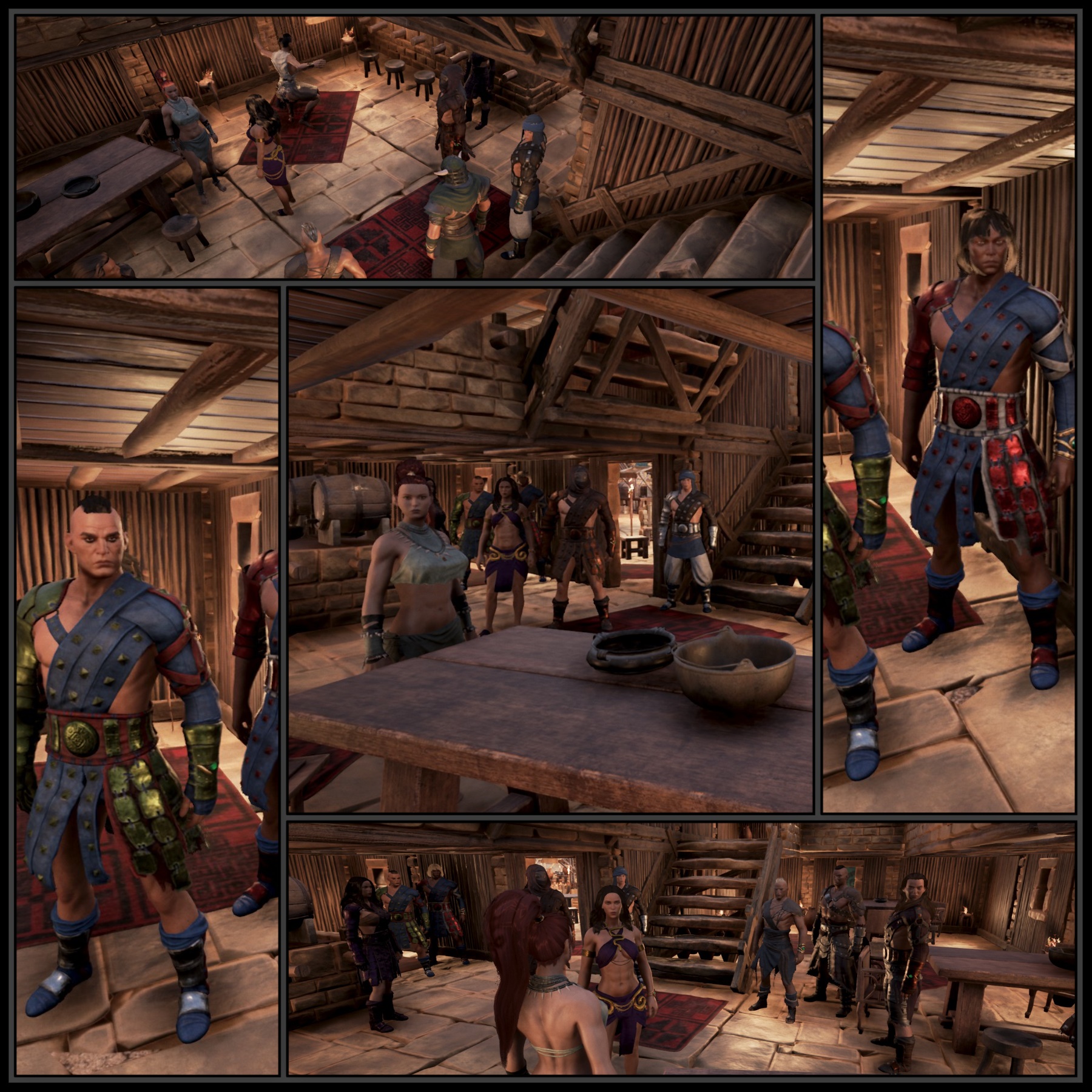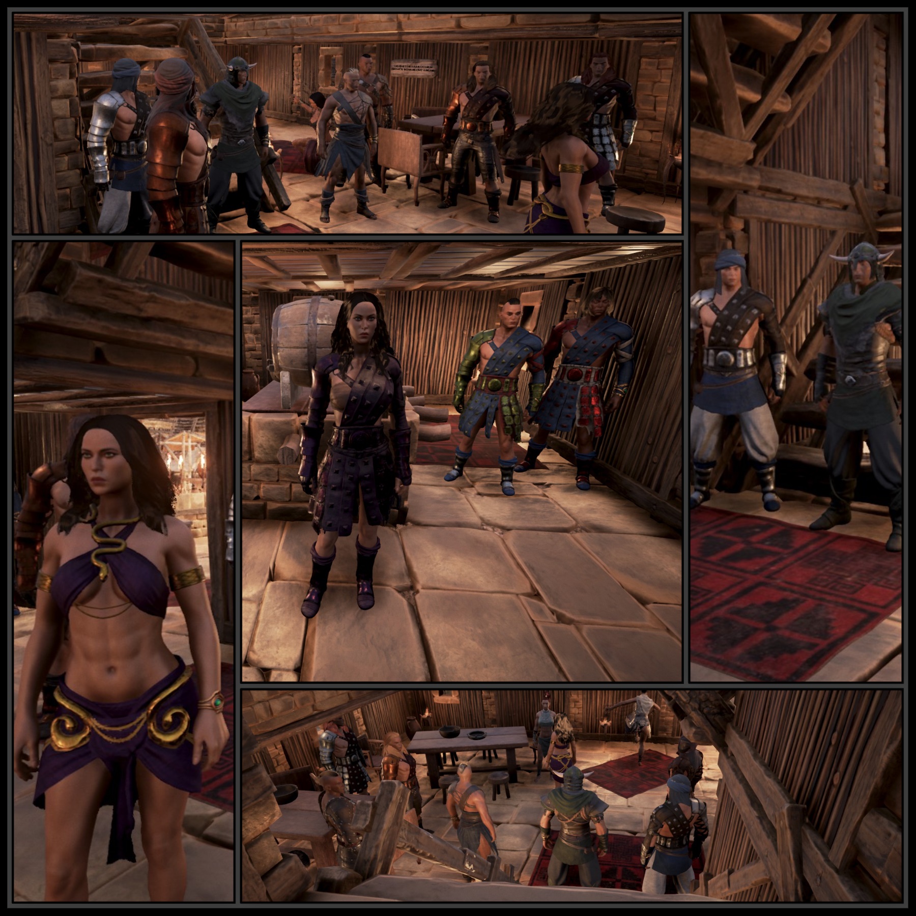 Aber es waren auch Freunde anwesend: Dschamal, dem sie eine besondere Aufgabe zukommen ließ, in dem Wissen er würde sich darum kümmern können. Karduum, den sie vermisst hatte, ihn und seine besondere Art, ihr Aufmerksamkeit zu schenken. Dson Faimon, ein Mitragläubiger Baumeister und Architekt, der mit dem Schwert geschickt war, aber mit einer Behinderung diese Karawane leitete und Thanathan, der zukünftige und rechtmäßige Herrscher der Verbannten, wenn denn ihre Pläne alle aufgingen. Es waren aber auch neue Gesichter da, welche sie noch nicht gänzlich zuordnen konnte und mit denen sie sich auch nicht weiter beschäftigen wollte - noch schienen sie für sie keinen Nutzen zu haben. Das Gift ihrer Augen provozierte dennoch Streit.