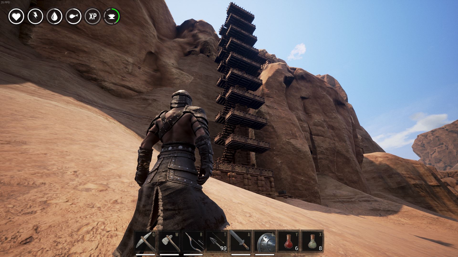 Als Alternative kannst du erstmal Fundamente übereinander zu einem Pfeiler bauen und mit Decken und Treppen eine Wendeltreppe drumherum bauen.