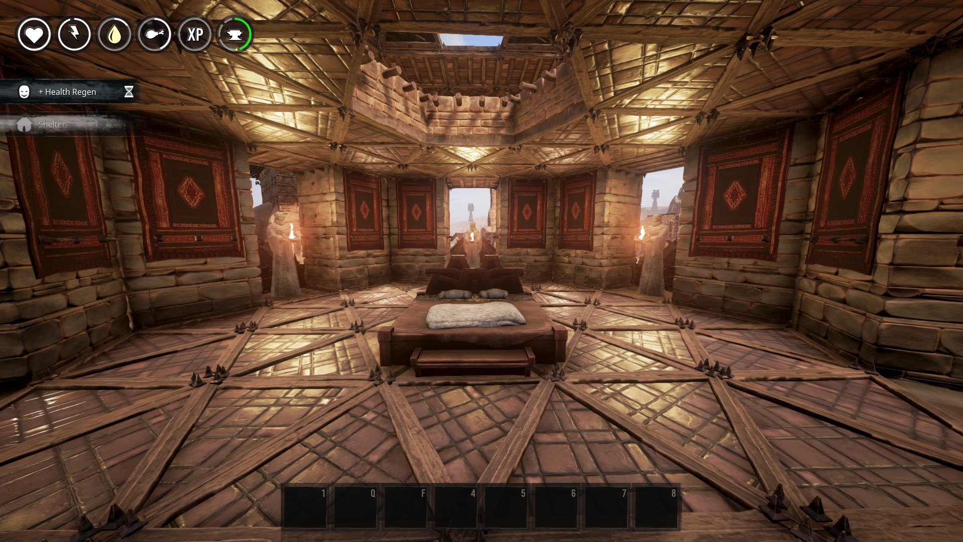 Das fertige Spiel wird mit gleich zwei neuen zusätzlichen Biomen erweitert. Somit existieren nun Wüste, Schnee (Berge / Nadelwälder), Dschungel (Sümpfe etc) & Vulkan (Felslandschaft mit verdorrten Bäumen & Lavaströmen). Das erste ist s.o ein feuchtwarmes Sumpf-Dschungelareal. Mächtige Gorillas marschieren durch hohes Gras, Nebelschwaden durchziehen den blubbernden Sumpf. Riesige Bäume (auf denen wir unsere Basis errichten können) versperren uns den Blick auf den Himmel. An einem Strand säumen Palmen das Wasser. Passend zur Dschungelatmosphäre zwitschern Vogelchöre, während es sanft regnet.