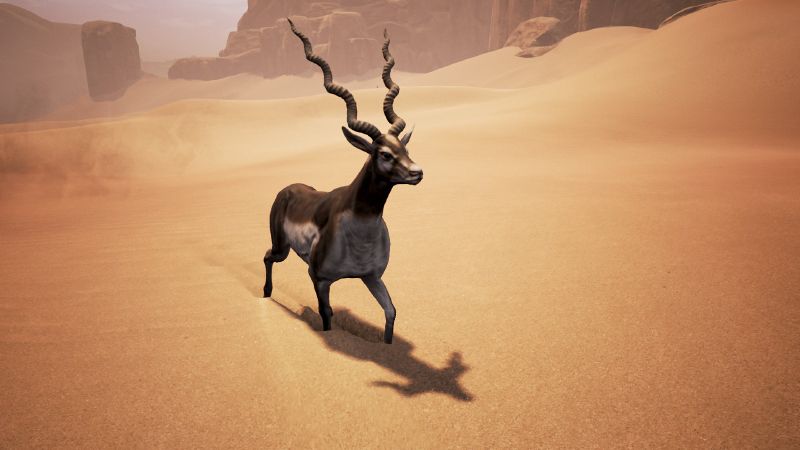 | Gazellen sind schlank gebaute, langbeinige Tiere. Sie erreichen Kopfrumpflängen von 85 bis 170 Zentimetern, wozu noch ein 15 bis 30 Zentimeter langer Schwanz kommt. Die Schulterhöhe liegt zwischen 50 und 110 Zentimeter und das Gewicht zwischen 12 und 85 Kilogramm. Das Fell ist an der Oberseite und an den Flanken gelblich-grau bis braun gefärbt, die Unterseite ist weiß. Bei vielen Arten erstreckt sich am Rumpf entlang ein schwarzer Streifen, der von einem darüber liegenden hellen Streifen begleitet wird. Üblicherweise haben beide Geschlechter Hörner, diese sind durchschnittlich 25 bis 35 Zentimeter lang. | Lebenspunkte: ? Drops: Tierhaut, Gazellenkopf, Knochen, Schmackhaftes Fleisch Typ: Wildtier Gruppe: Beutetier Temperament: Passiv, flüchtet Erfahrungspunkte: ? |
