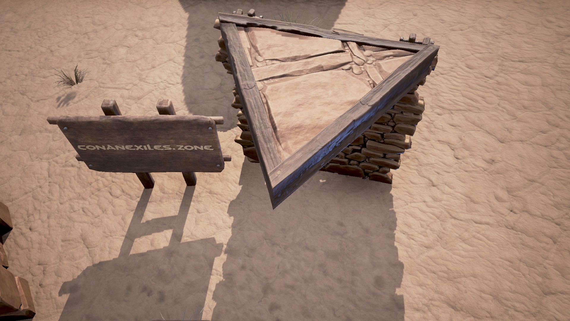 Das Sandsteindreieck ist eine Stufe 1 Struktur in Conan Exiles. conanexiles.zone/attachment/197/ Rezept: 25 Sandstein + 3 Holz Vorraussetzung: Level 9, 1 Wissenspunkt Steinmetzlehrling