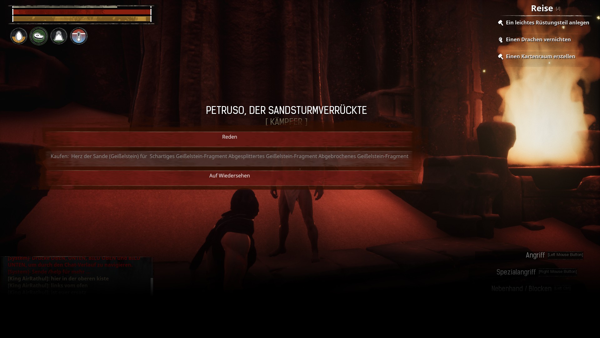Petruso, der Sandsturmverrückte verkauft euch das Herz der Sande (Geißelstein) für verschiedene Geißelsteinfragmente. |