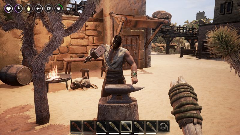 | conanexiles.zone/attachment/433/ | Schmiede arbeiten an der Werkbank eines Schmieds und reduzieren die Ressourcen, die für die Herstellung von Waffen und Werkzeugen benötigt werden. Ihr könnt sie so ziemlich überall finden. Es gibt derzeit 4 Stufen von Schmied Leibeigenen. Stufe 3 und Stufe 4 (benannt) Schmiede haben eine Chance makellose oder außergewöhnliche Rezepte zu beherrschen. |