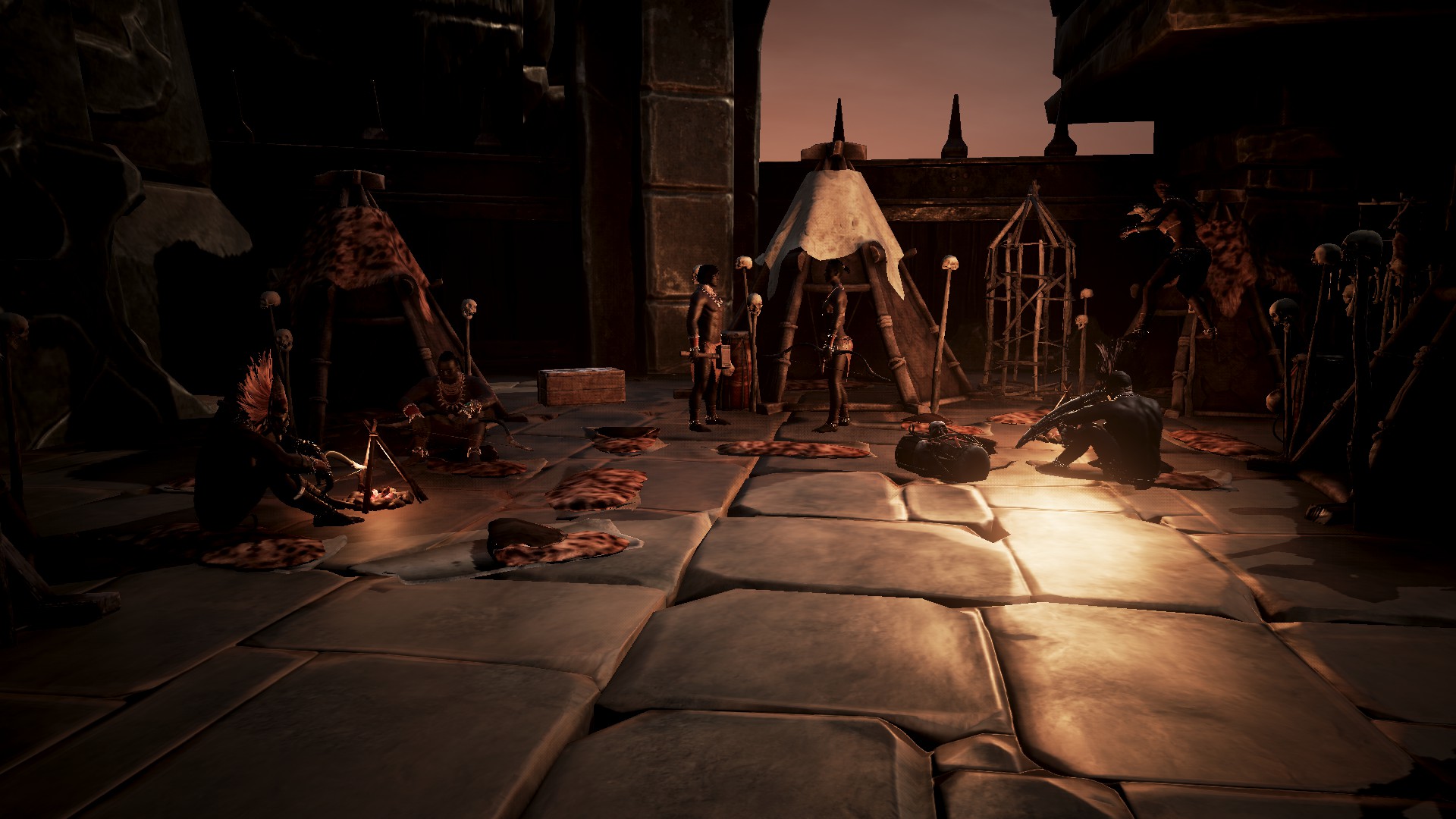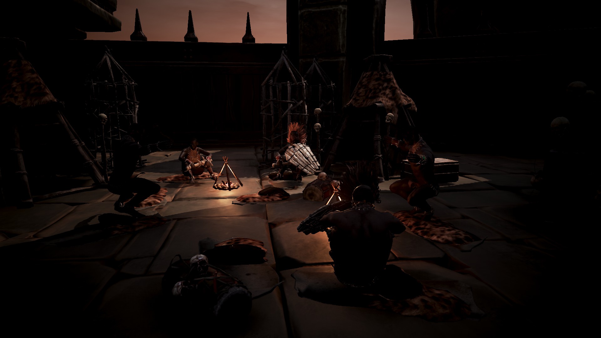 | Der Ort der Beschwörung ist das wohl größte Lager der Darfari Kannibalen. Ihr findet hier auch einen Yog-Priester, der allerdings sehr stark bewacht wird. Auch andere geeignete Leibeigene wie beispielsweise Köche, Tänzer, Rüstungsmacher, oder Zimmermänner könnt ihr hier finden. Die NPC stehen hier eng beieinander, kommt in der Gruppe und nehmt einen Schild mit, da die Darfari viele gute Bogenschützen in ihren Reihen haben! |