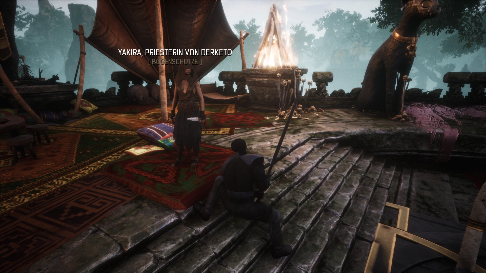 | Die Pagode der unendlichen Lust ist südöstlichen Teil des Sumpf/Dschungelgebiets versteckt. Hier trefft ihr auf Lemurianer. Auch Yakira, Priesterin von Derketo findet ihr hier um die Derketo Religion zu lernen. |