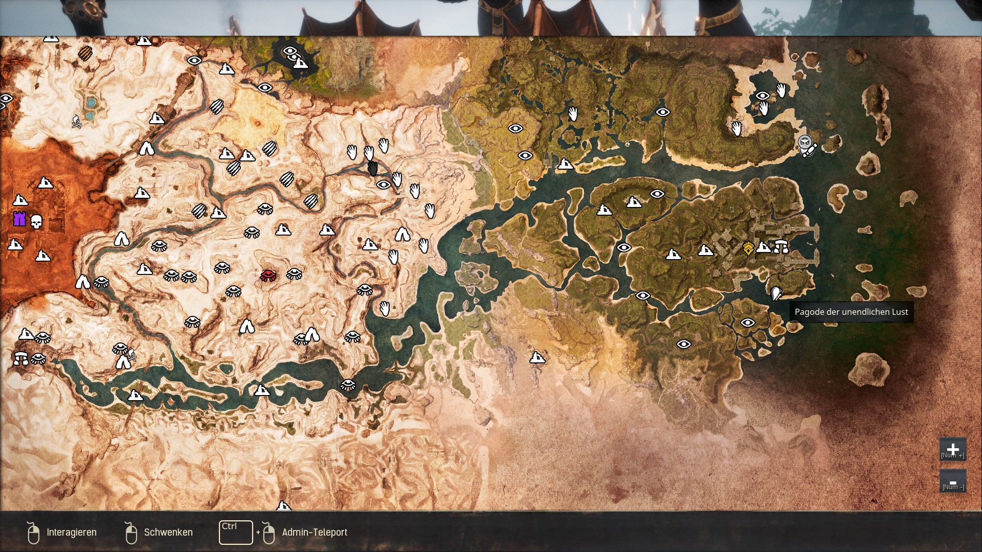 | conanexiles.zone/attachment/1666/ | Die Pagode der unendlichen Lust ist südöstlichen Teil des Sumpf/Dschungelgebiets versteckt. Hier trefft ihr auf Lemurianer. Auch Yakira, Priesterin von Derketo findet ihr hier um die Derketo Religion zu lernen. |