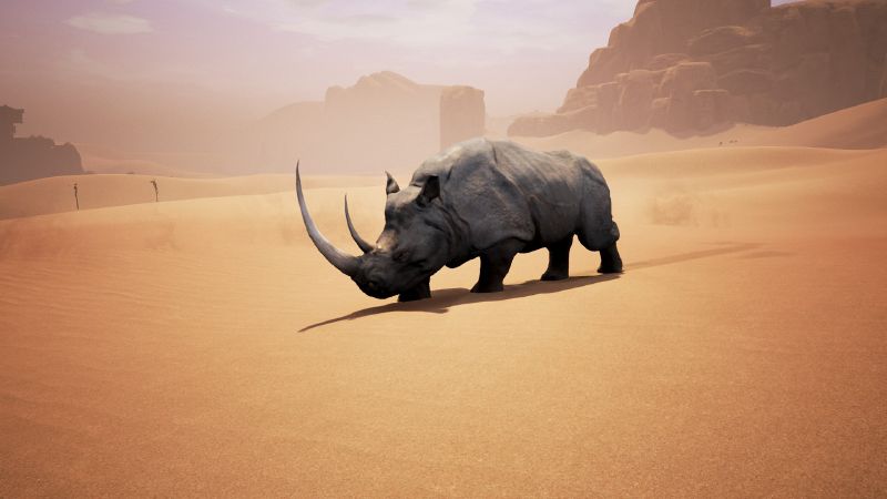 Ein großes, stark gebautes, pflanzenfressendes Säugetier mit einem oder zwei Hörnern auf der Nase und dicker, gefalteter Haut. | Lebenspunkte: 322 Drops: Dicke Tierhaut, Exotisches Fleisch, Grauer Nashornkopf, Knochen Typ: Wildtier Gruppe: Beutetier Temperament: Aggressiv Erfahrungspunkte: 876 |